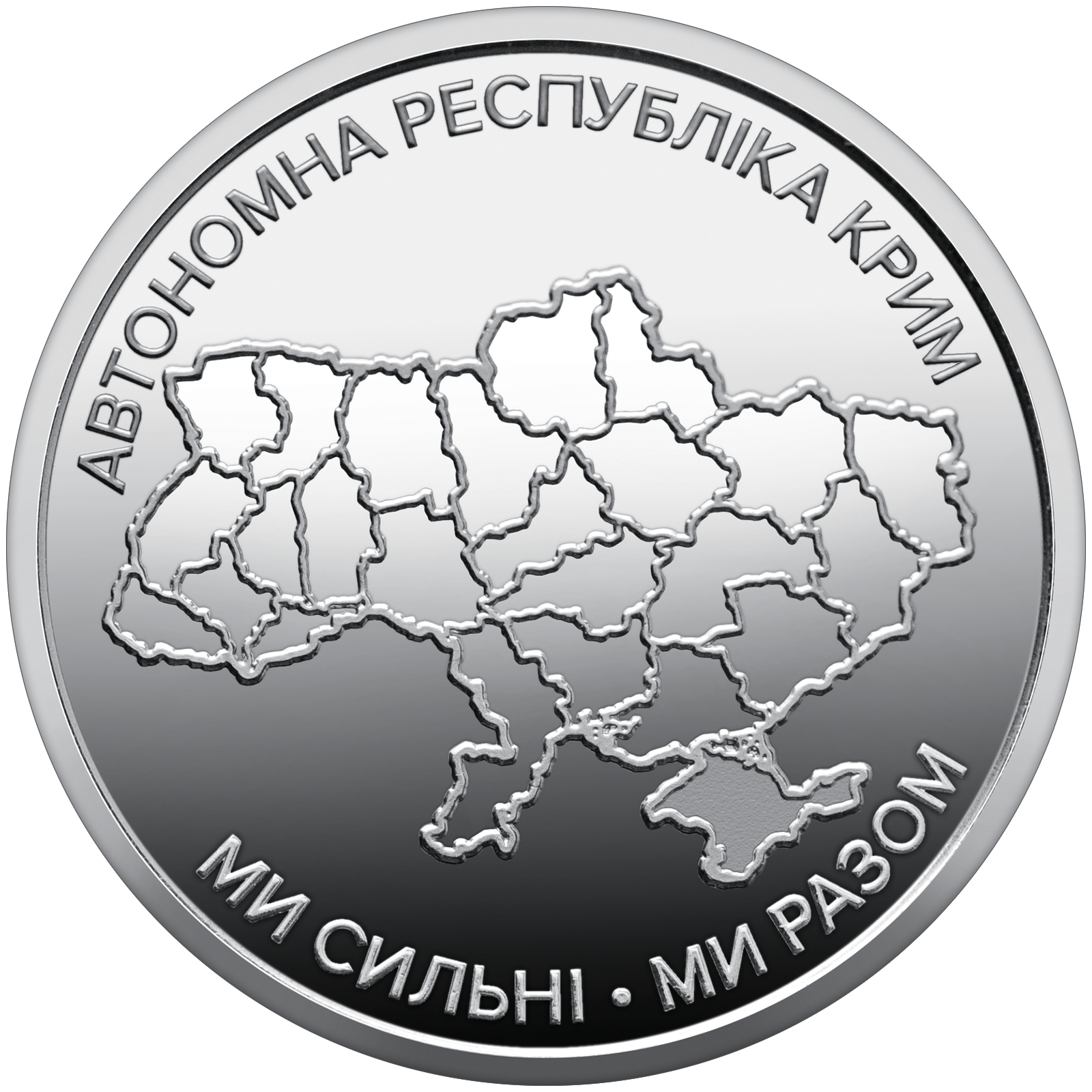Обігова пам’ятна монета “Ми сильні. Ми разом. Автономна Республіка Крим” присвячена невід’ємній частині України, що має особливий статус, визначений Конституцією України, – Автономній Республіці Крим. Її територіальна належність до України підтверджена міжнародним правом і визнана світовою спільнотою.